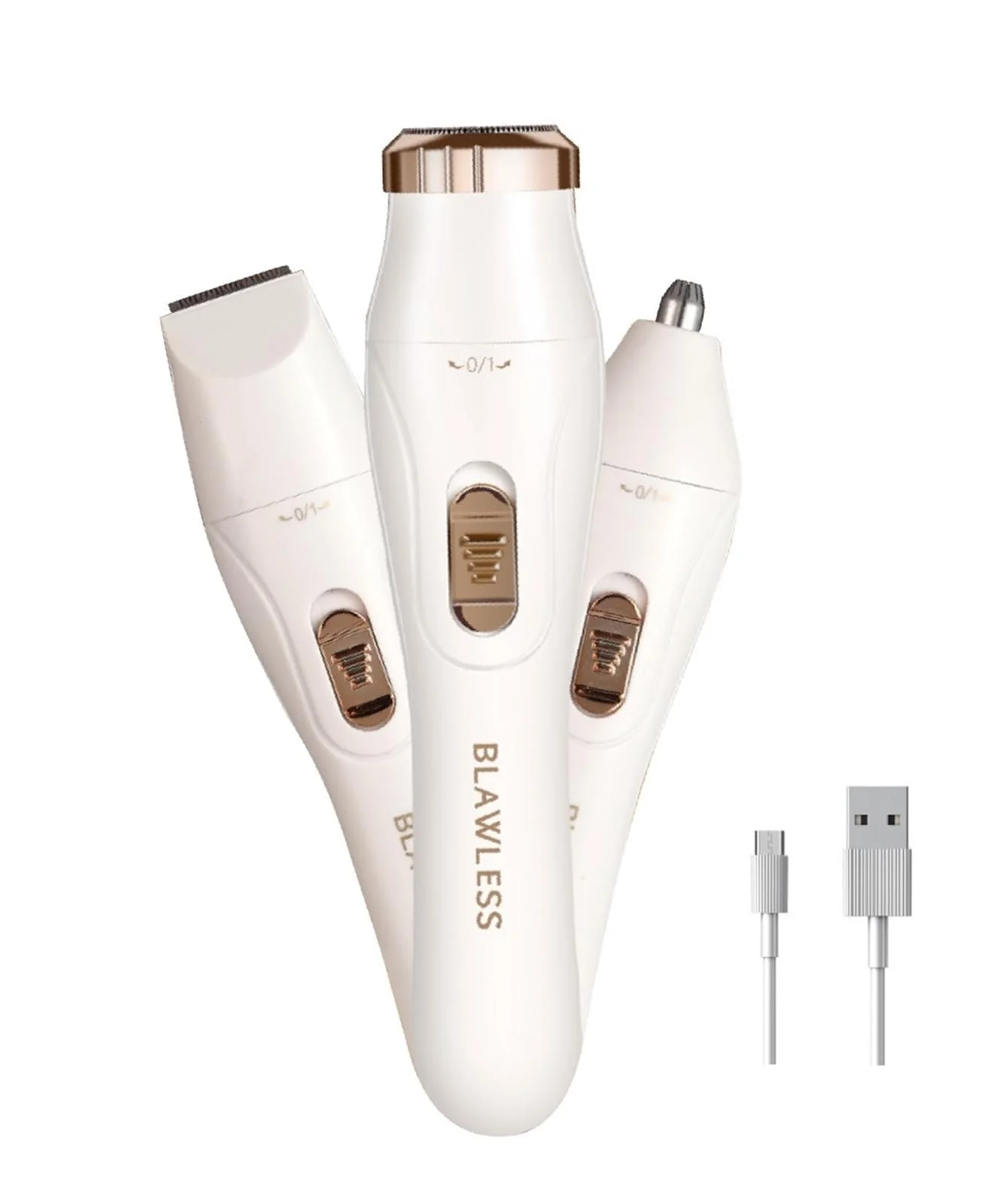 Elevate your grooming routine with the 3 in 1 Blawless Rechargeable Electric Shaver Set, designed to provide efficient and comfortable hair removal for women.