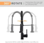 Heavy-Duty Spring Kitchen Sink Mixer Tap with Hose – Brushed Black