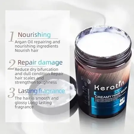 Keratin helps to add shine, reduce frizz, and reduce the appearance of split ends by bonding the hair back together.