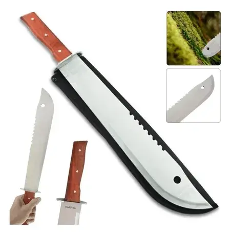 This machete was made from one continuous piece of steel, has a stainless blade with saw teeth on the back of the blade.
